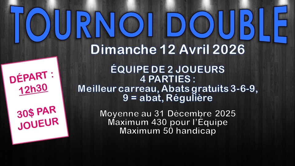 Accueil Nouvelles Tournoi Double Petites Quilles Tournoi Double Petites Quilles 24/09/2025 Sher-Mont Tournoi Double Petites Quilles Le 12 Avril 2026 inscription à l’accueil ou par téléphone. Catégorie(s) : N / C